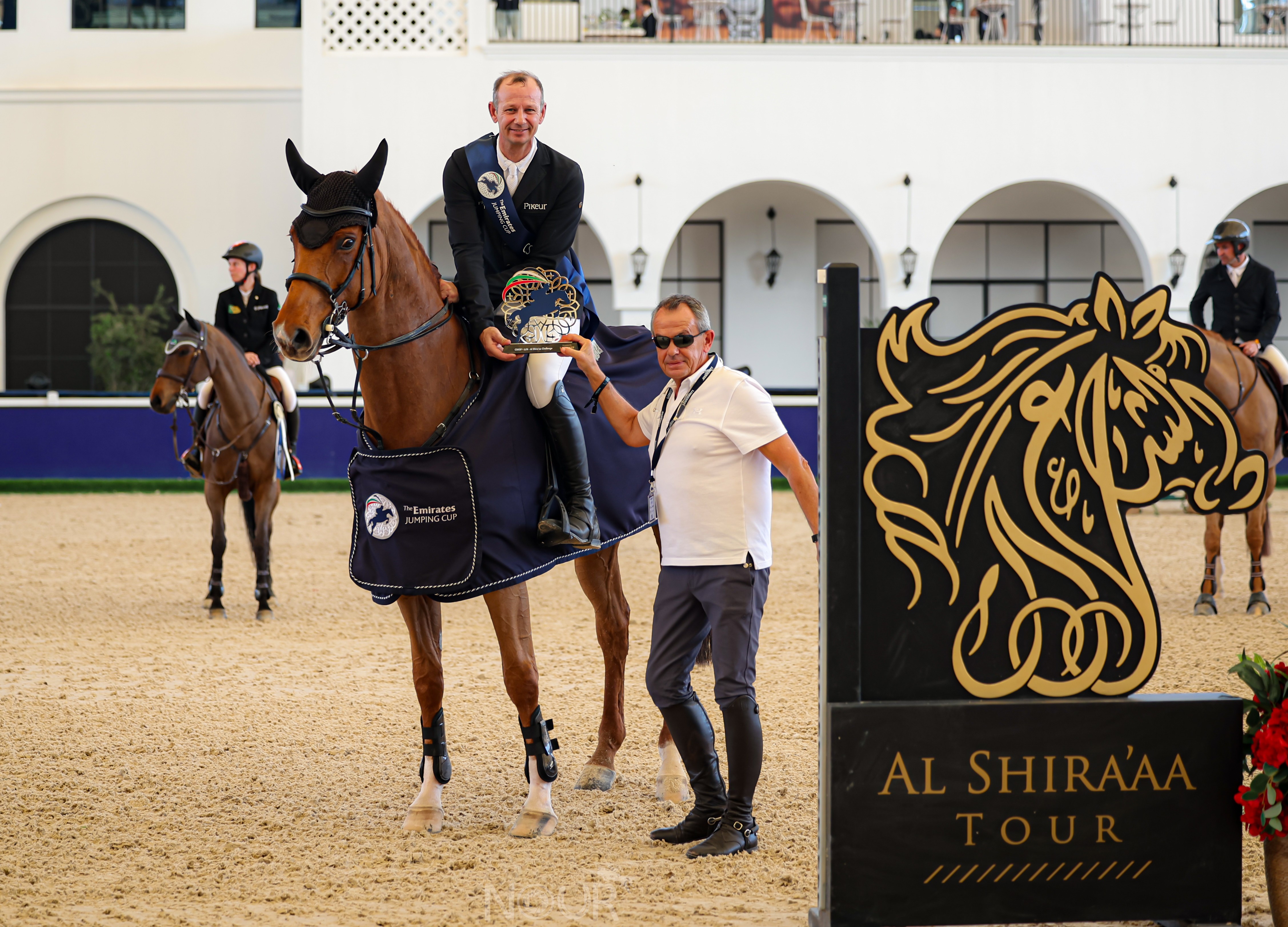 The CSIO5* Al Shira’aa Challenge (1.50m) delivered a gripping contest earlier in the afternoon, with 39 combinations lining up to take on a demanding first-round track. Sweden’s Henrik von Eckermann set the pace from the outset, first to go and producing one of six clear rounds in a sharp 71.96s. The final double proved influential throughout the class, catching out several contenders and preventing many from progressing to the second round. In total, six combinations jumped clear, joined in the winning round by two riders carrying time faults and two with a single rail down, with the top ten advancing.