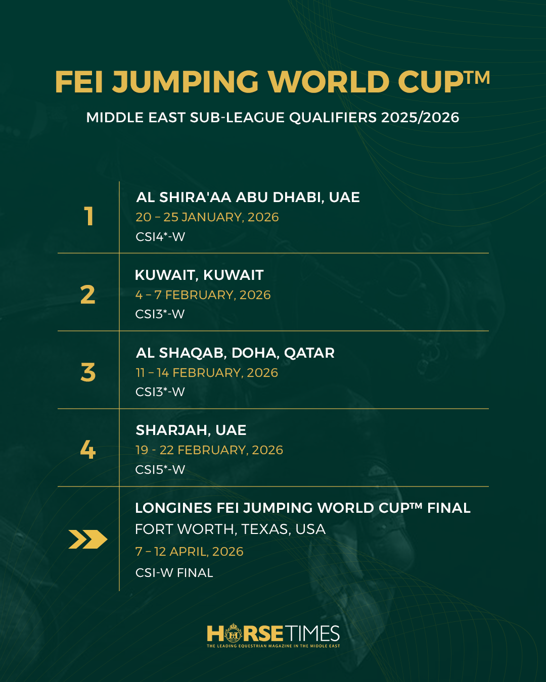 THE ROAD TO TEXAS: HOW THE ARAB LEAGUE QUALIFIES FOR THE LONGINES FEI JUMPING WORLD CUP FINAL