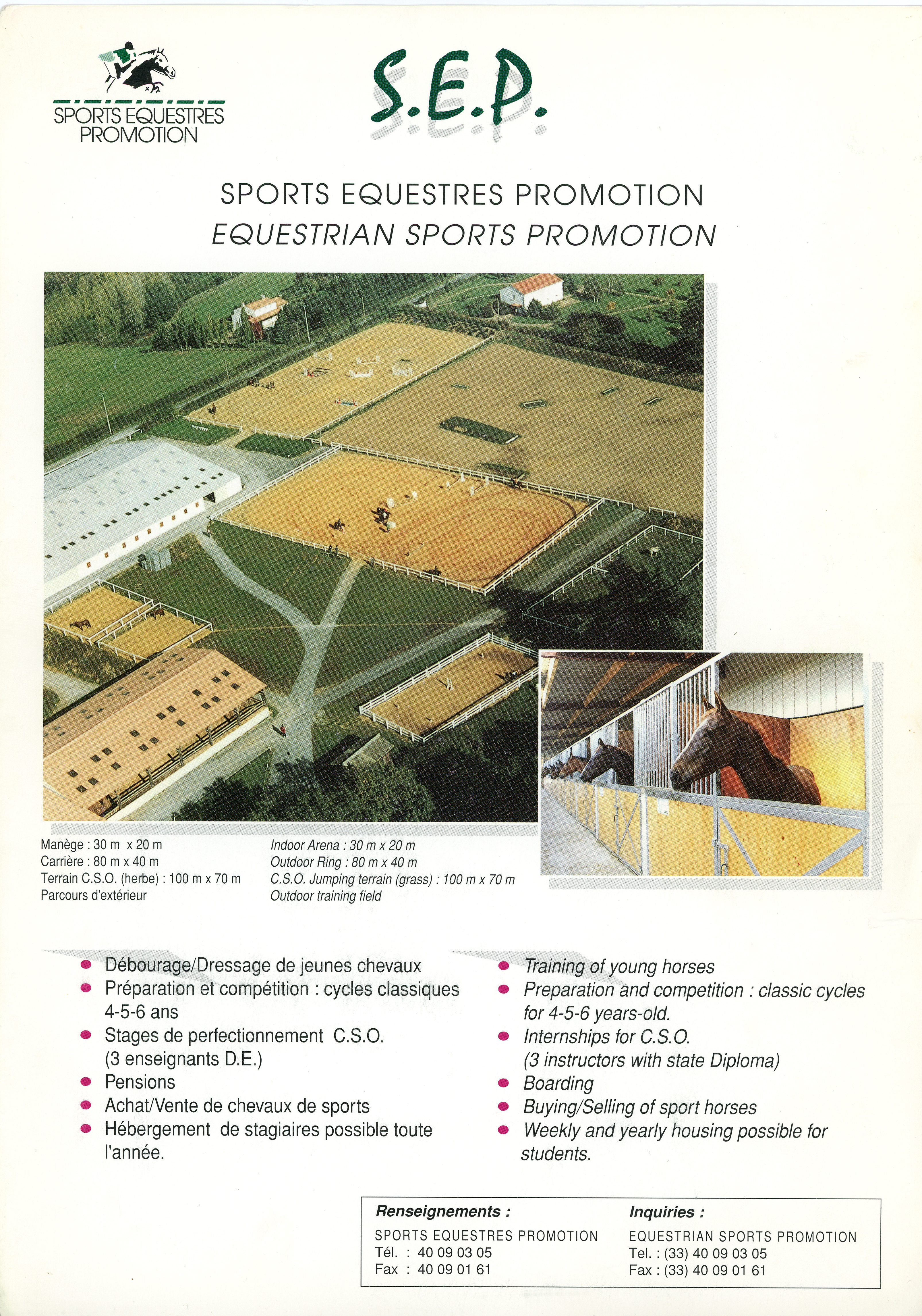 - Eight years as a self-employed entrepreneur, starting my first business - Sports Equestres Promotion - and diversifying its activities. It was during this time that I began travelling abroad to try to open up new markets.